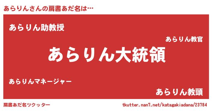 | ヒーロー風カッコイイあだ名 | 『ウルトラあらりんマン』『ネオアラリン』 |