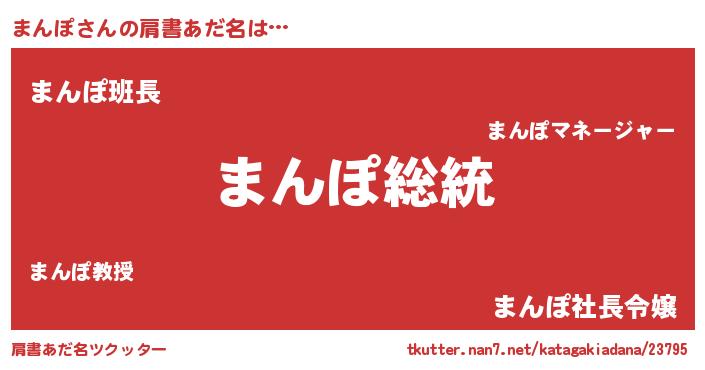 | 意味不明あだ名 | 『自称まんぽ』『とにかく怪しいまんぽ』 |