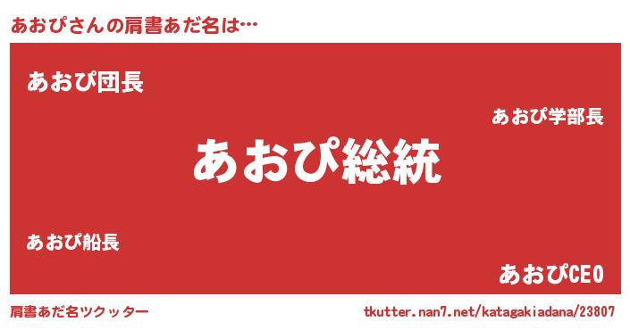 | ピコ太郎風あだ名 | 『アオ四郎』『アコ次郎』『アア太郎』 |