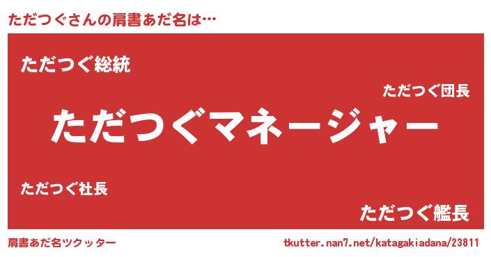 | 男性向けラノベタイトル風あだ名 | 『ただつぐに滅ぼされるだけの簡単なお仕事です』 |