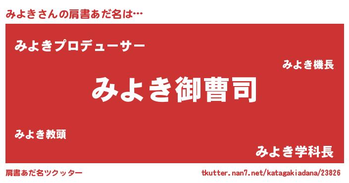 | 男性向けラノベタイトル風あだ名 | 『みよきの憂鬱』『はたらくみよきさま!』 |