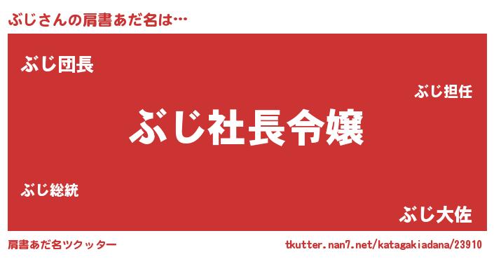 | ポケモン風あだ名 | 『ブジチュウ』『ヒブジ』『ゼニブジ』 |