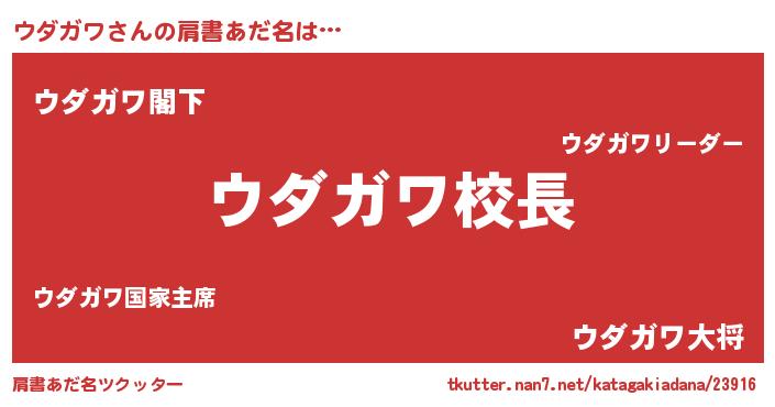 | ヒーロー風カッコイイあだ名 | 『ネオウダガワ』『最強戦士ウダガワ』 |