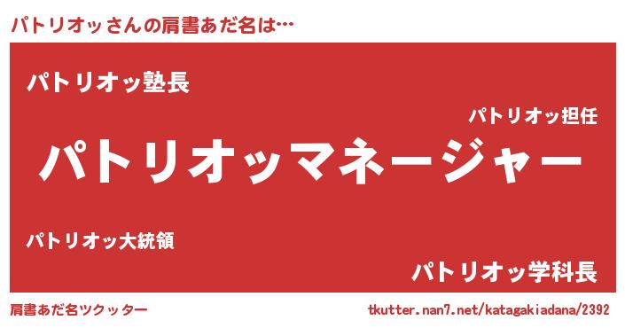 | 意味不明あだ名 | 『とにかく怪しいパトリオッ』 |