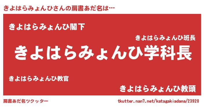 | ヘコむあだ名 | 『きよはらみょんひ(苦笑)』『きよっ子』 |