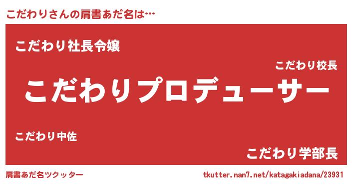 | ヒーロー風カッコイイあだ名 | 『スーパーコダワリ』『愛の使者こだわり』 |
