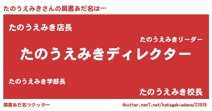 | ヒーロー風カッコイイあだ名 | 『スーパータノウエミキ』『黄金騎士タノ』 |