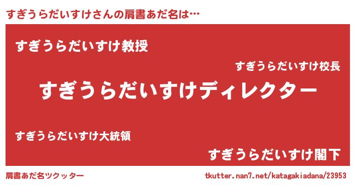 | 男性向けラノベタイトル風あだ名 | 『はたらくすぎうらだいすけさま!』 |