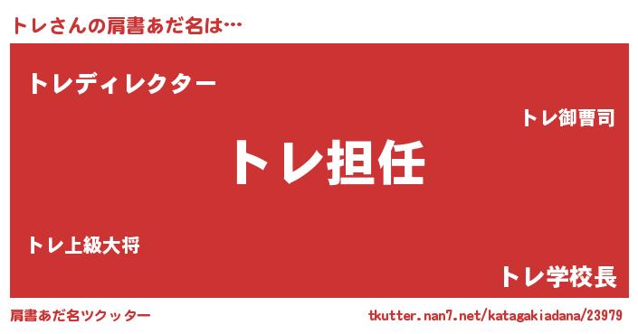 | 男性向けラノベタイトル風あだ名 | 『トレという概念が存在しない退屈な世界 』 |