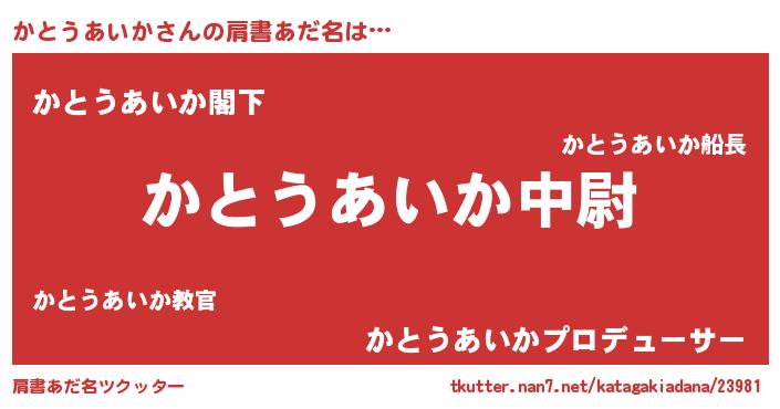 | 男性向けラノベタイトル風あだ名 | 『カトウアイカスレイヤー』 |