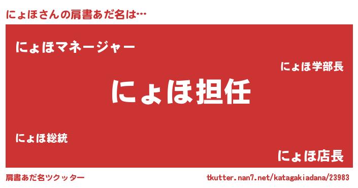 | 男性向けラノベタイトル風あだ名 | 『にょほという概念が存在しない退屈な世界 』 |