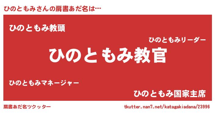 | 意味不明あだ名 | 『住所不定無職ひのともみ(6歳)』 |