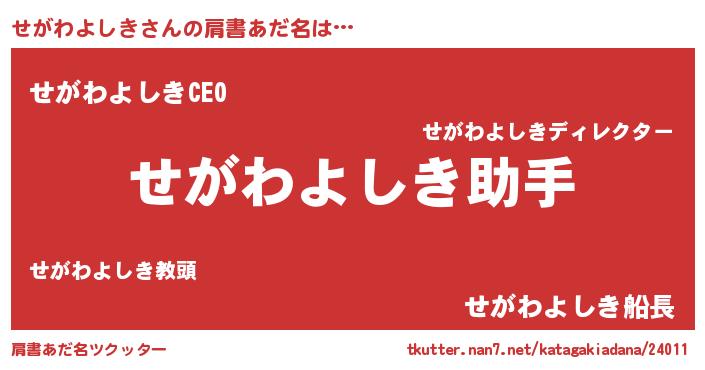 | ヘコむあだ名 | 『せがふぇ~』『せがわよしき(笑)』 |