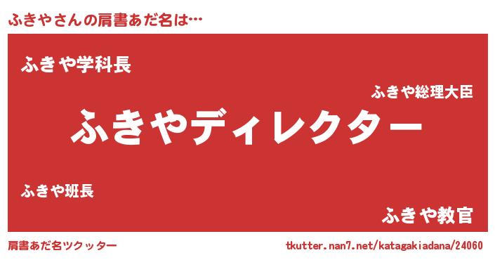 | 男性向けラノベタイトル風あだ名 | 『はたらくふきやさま!』 |