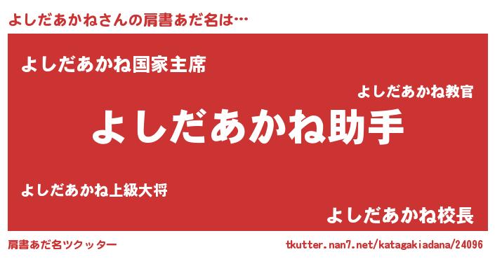 | 女子向けラノベタイトル風あだ名 | 『よしだあかね恋絵巻』 |