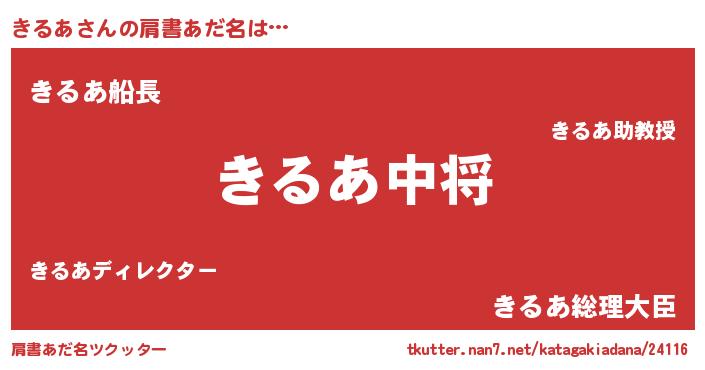 | 女子向けラノベタイトル風あだ名 | 『きるあの玉の輿計画!』 |