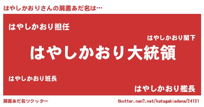 | ヒーロー風カッコイイあだ名 | 『ウルトラはやしかおりマン』 |