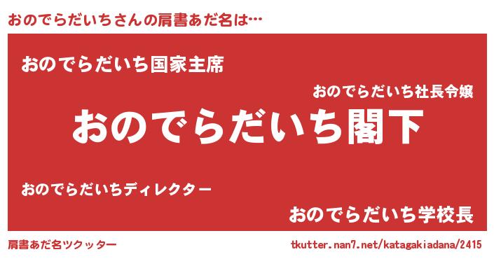 | 意味不明あだ名 | 『自称おのでらだいち』 |