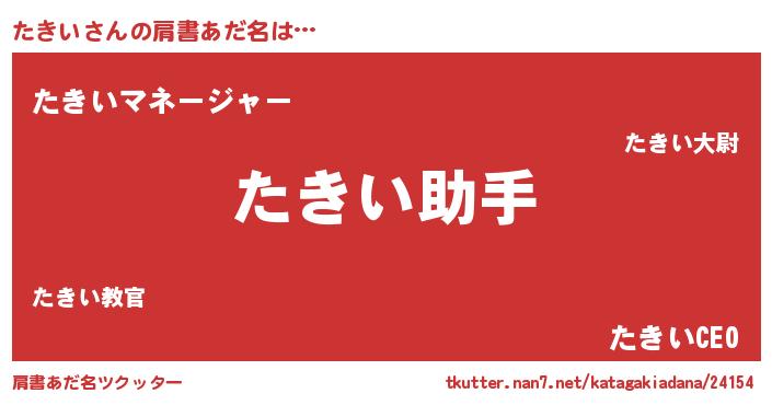 | ヘコむあだ名 | 『たきにゅー』『たきい(小並感)』 |