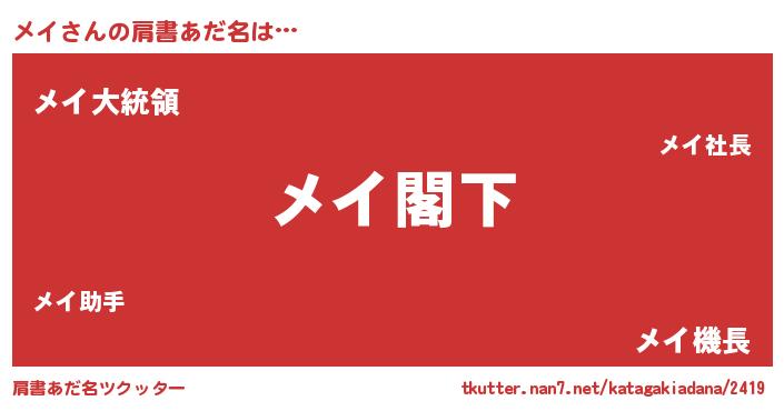 | 意味不明あだ名 | 『自称メイ』『メイフォーエバー』 |