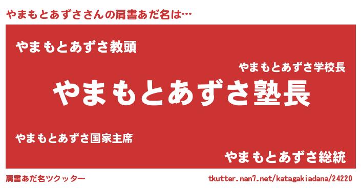 | 男性向けラノベタイトル風あだ名 | 『やまもとあずさの嫁は女の子じゃないと思った?』 |
