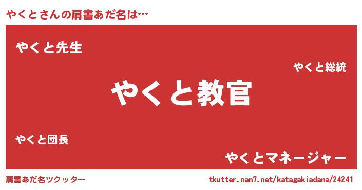 | 欧米人風あだ名 | 『ダレノガレやくと』『ウサインやくと』 |