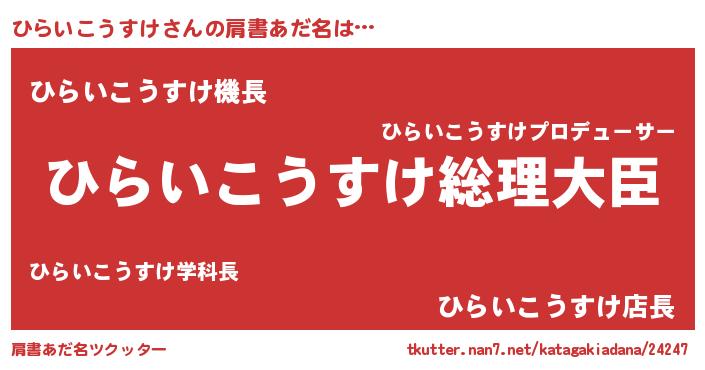 | 男性向けラノベタイトル風あだ名 | 『やはりひらいこうすけの青春ラブコメはまちがっている 』 |