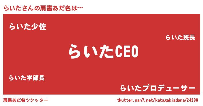 | ヘコむあだ名 | 『らいふぇ~』『らいお』『つくし』 |