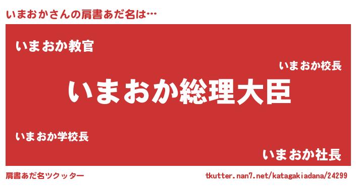 | 女子向けラノベタイトル風あだ名 | 『いまおかの雑貨屋さん』 |