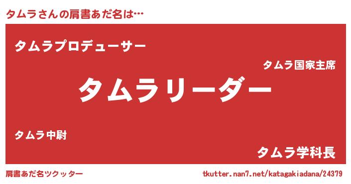 | ポケモン風あだ名 | 『ヒタムラ』『タムゴンZ』 |