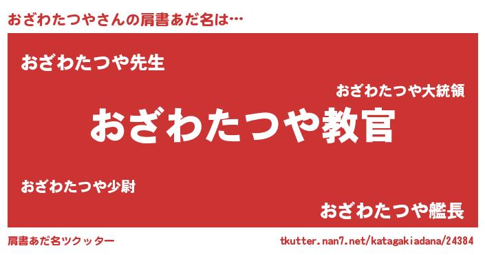 | 男性向けラノベタイトル風あだ名 | 『この素晴らしい世界におざわたつやを!』 |