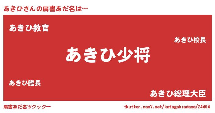 | 男性向けラノベタイトル風あだ名 | 『あきひ~年齢イコール彼女いない歴の魔法使い~』 |