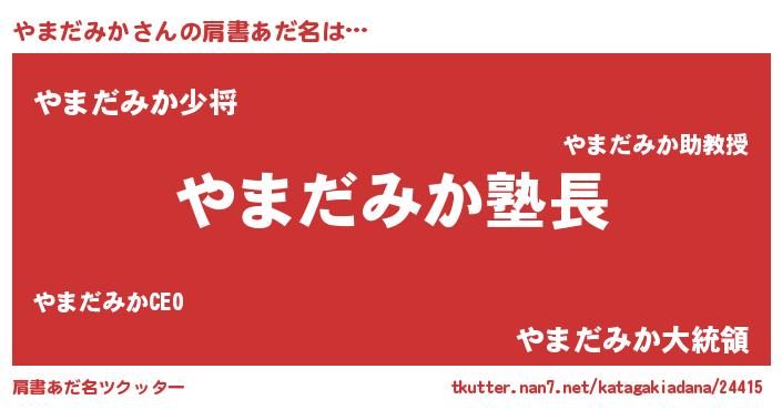 | 意味不明あだ名 | 『とにかく怪しいやまだみか』 |