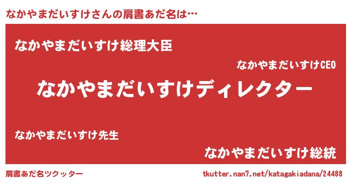 | 男性向けラノベタイトル風あだ名 | 『はたらくなかやまだいすけさま!』 |