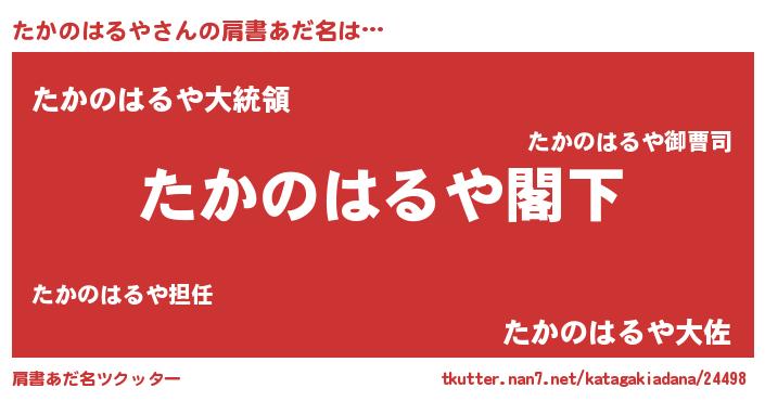 | 意味不明あだ名 | 『自称たかのはるや』 |