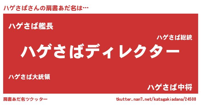 | 欧米人風あだ名 | 『アンジェラ・ハゲさば』 |