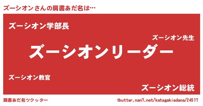 | 女子向けラノベタイトル風あだ名 | 『ズーシオン様がみてる』 |