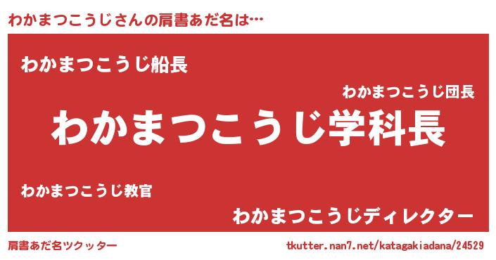 | 男性向けラノベタイトル風あだ名 | 『おまえをオタクにしてやるから、俺をわかまつこうじにしてくれ! 』 |