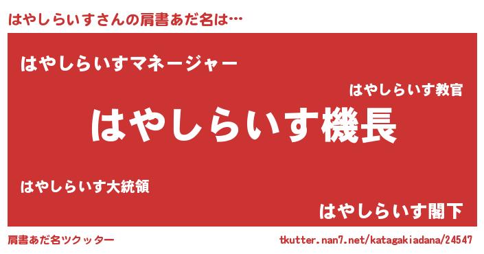 | 欧米人風あだ名 | 『はやしらいす・ステッグマイヤー』 |