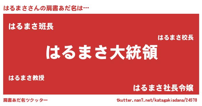 | ポケモン風あだ名 | 『ハルマダネ』『ヒハルマサ』 |