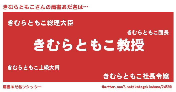 | 男性向けラノベタイトル風あだ名 | 『おまえをオタクにしてやるから、俺をきむらともこにしてくれ! 』 |