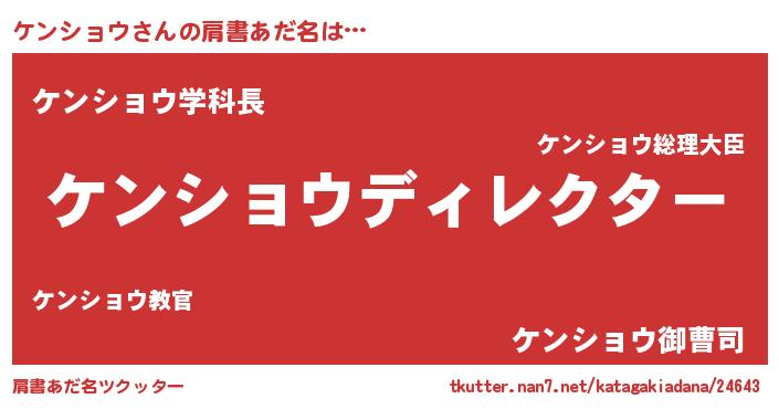 | ヒーロー風カッコイイあだ名 | 『正義の使者ケンショウ』『仮面ケンダー』 |