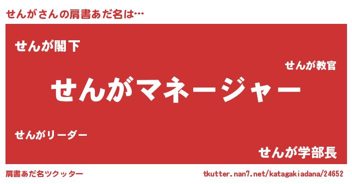 | ヒーロー風カッコイイあだ名 | 『最強戦士センガ』『友情の使者せんが』 |
