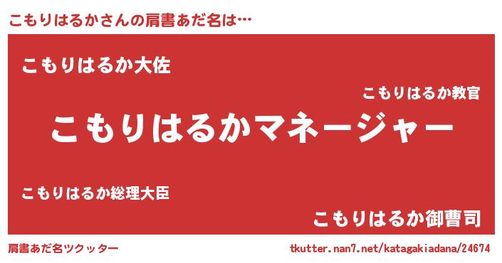| 男性向けラノベタイトル風あだ名 | 『こもりはるかに滅ぼされるだけの簡単なお仕事です』 |