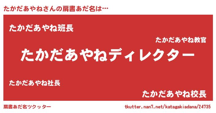 | ヘコむあだ名 | 『たか太郎』『たかだあやね(笑)』 |