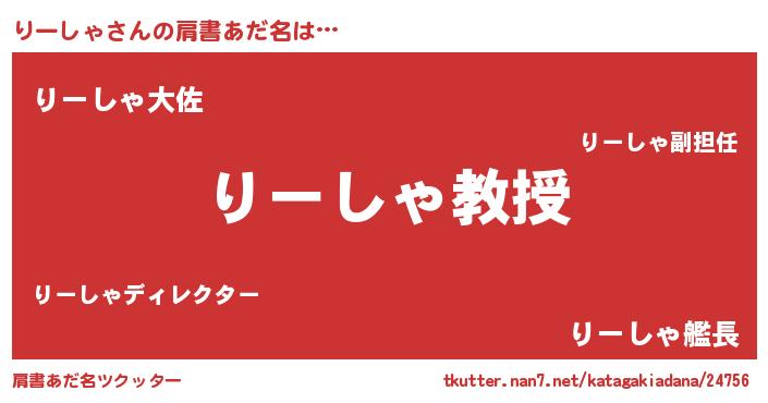 | ヒーロー風カッコイイあだ名 | 『正義の使者りーしゃ』『ネオリーシャ』 |