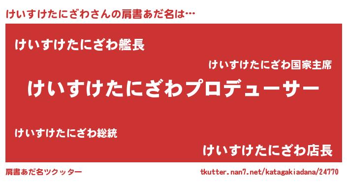 | 男性向けラノベタイトル風あだ名 | 『けいすけたにざわに滅ぼされるだけの簡単なお仕事です』 |