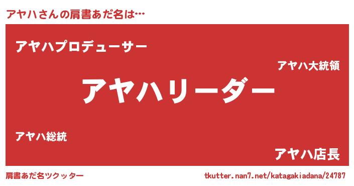 | 意味不明あだ名 | 『とにかく怪しいアヤハ』『自称アヤハ』 |