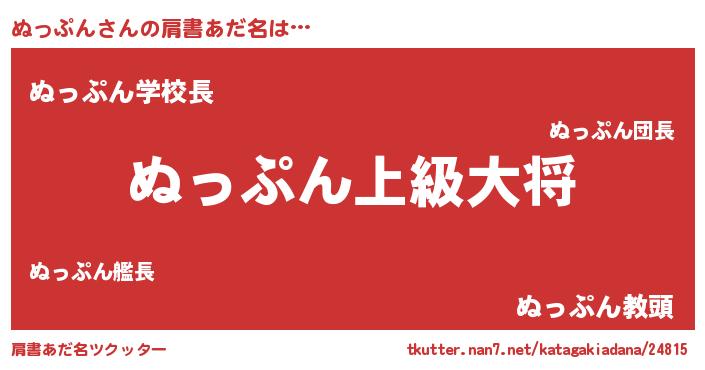 | 男性向けラノベタイトル風あだ名 | 『ヌップンスレイヤー』 |