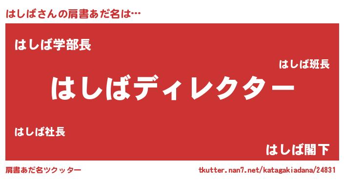 | 男性向けラノベタイトル風あだ名 | 『はたらくはしばさま!』『はしばの憂鬱』 |